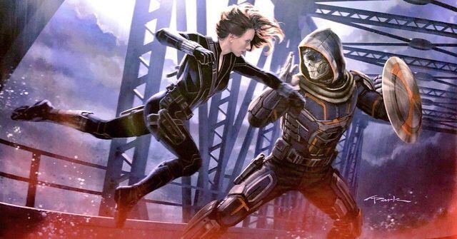 Black Widow, también conocida como Natasha Romanoff e interpretada por Scarlett Johansson, aparece en el tráiler en una secuencia de entrenamiento para ser parte del programa de élite de la KGB, además aparecen los personajes que acompañarán a la Viuda Negra.