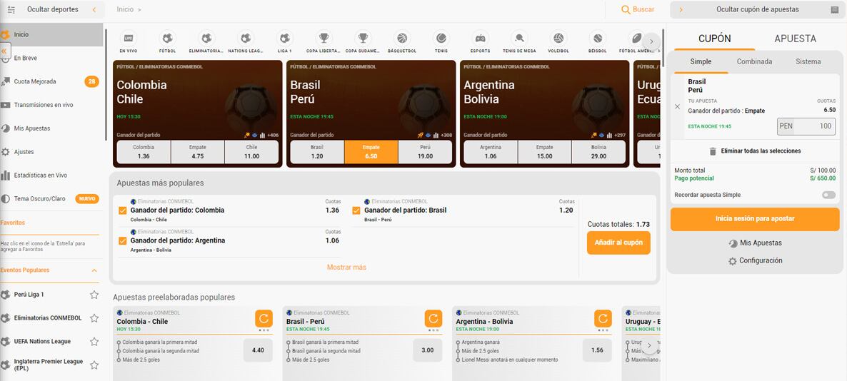 Asimismo, el sitio permite el acceso a transmisiones en vivo de los principales eventos de cada jornada, para lo cual es necesario iniciar sesión y contar con fondos en la cuenta de juego de Inkabet Perú.