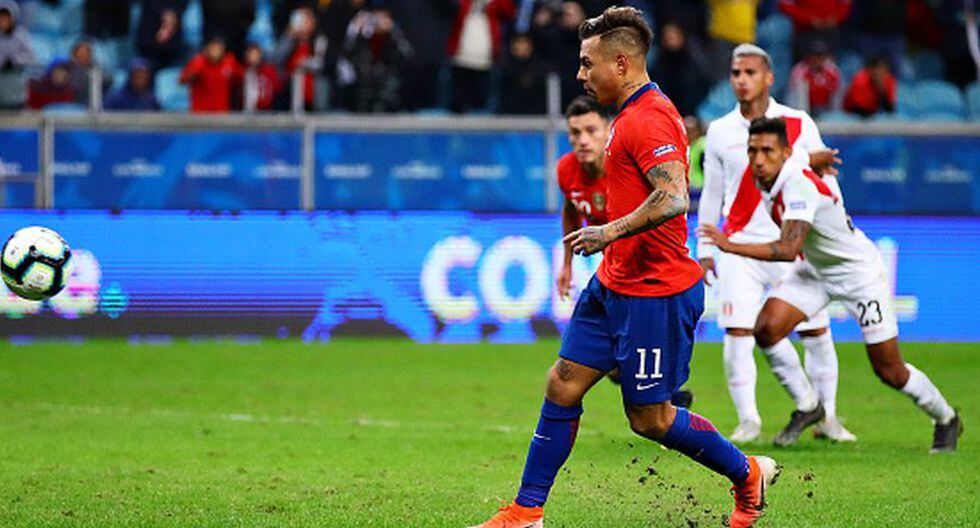 Minuto 95 del Perú vs. Chile. Se sanciona penal para 'La roja' por falta de Luis Abram que el VAR sancionó y Eduardo Vargas fue el encargado de pararse frente al balón para intentar vencer la portería defendida por Pedro Gallese.