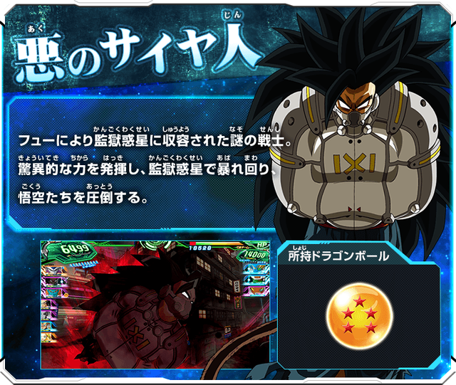 Él proviene del planeta prisión que se mostró en el videojuego Dragon Ball Heroes. El personaje podría dar el salto a la película, liego de liberarse se sus ataduras. Lo curioso es que lleva el mismo corte de cabello que Raditz y los ojos blancos como Broly.