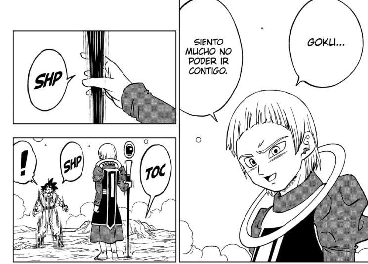 De esta manera, Merus le pide perdón a Gokú por llevar las cosas demasiado lejos, aceptando volver al mundo superior donde los ángeles viven y dejando a Gokú solo al costado de una nave que tendría que pilotear sin ayuda para regresar a la Tierra.