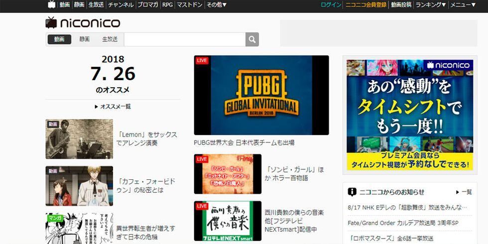 Esta es una web japonesa que se considera el YouTube del país del sol naciente. Esta plataforma de video publica constantemente animes producidos de forma independiente con su idioma original. Al ser contenido producido por los mismos usuarios, todos los videos son distribuidos de manera gratuita.