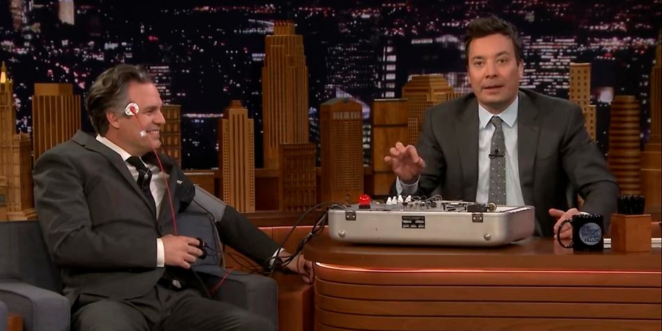 Haciendo caso omiso a los lamentos de Mark Ruffalo, el conductor pregunto al intérprete cosas como "¿Es Hulk, en secreto, un extraterrestre que cambia de forma conocido como Skrull?". Aunque Ruffalo dijo que no podía responder a eso, el detector de mentiras se activó. "¿Hay pistas ocultas en el último tráiler de Vengadores de las que nadie se haya dado cuenta?", seguía preguntando. "No que yo sepa", respondía Ruffalo, pero el detector saltó de nuevo. "¿Bruce Banner y Viuda Negra finalmente estarán juntos románticamente en la nueva película?", continuó Fallon. "Jimmy, no puedo responder eso", decía Ruffalo mientras el detector se volvía loco. También mintió cuando Fallon le enseñó una figura de Hulk y negó que hubiera jugado alguna vez consigo mismo.