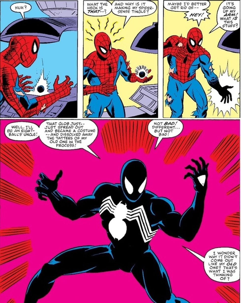Este sería Venom, el simbionte que en esta ocasión se presentó como una simple masa oscura adhiriéndose al traje de Spider-Man, otorgándole más fuerza y eliminando el anterior. Peter Parker no tiene mucho tiempo de reaccionar, ya que poco tiempo después viene el Profesor X para anunciar que Galactus está a punto de devorar el planeta y tienen que enfrentarlo.
