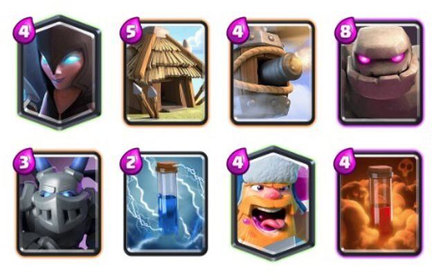 El uso del deck es bastante sencillo. La idea es crear un empuje con el Golem de Piedra por delante, seguido de la Bruja Oscura y del Leñador o del Barril. Sin embargo, debes defender al inicio de la partida ya que toma bastante tiempo armar un empuje con un elixir tan elevado.