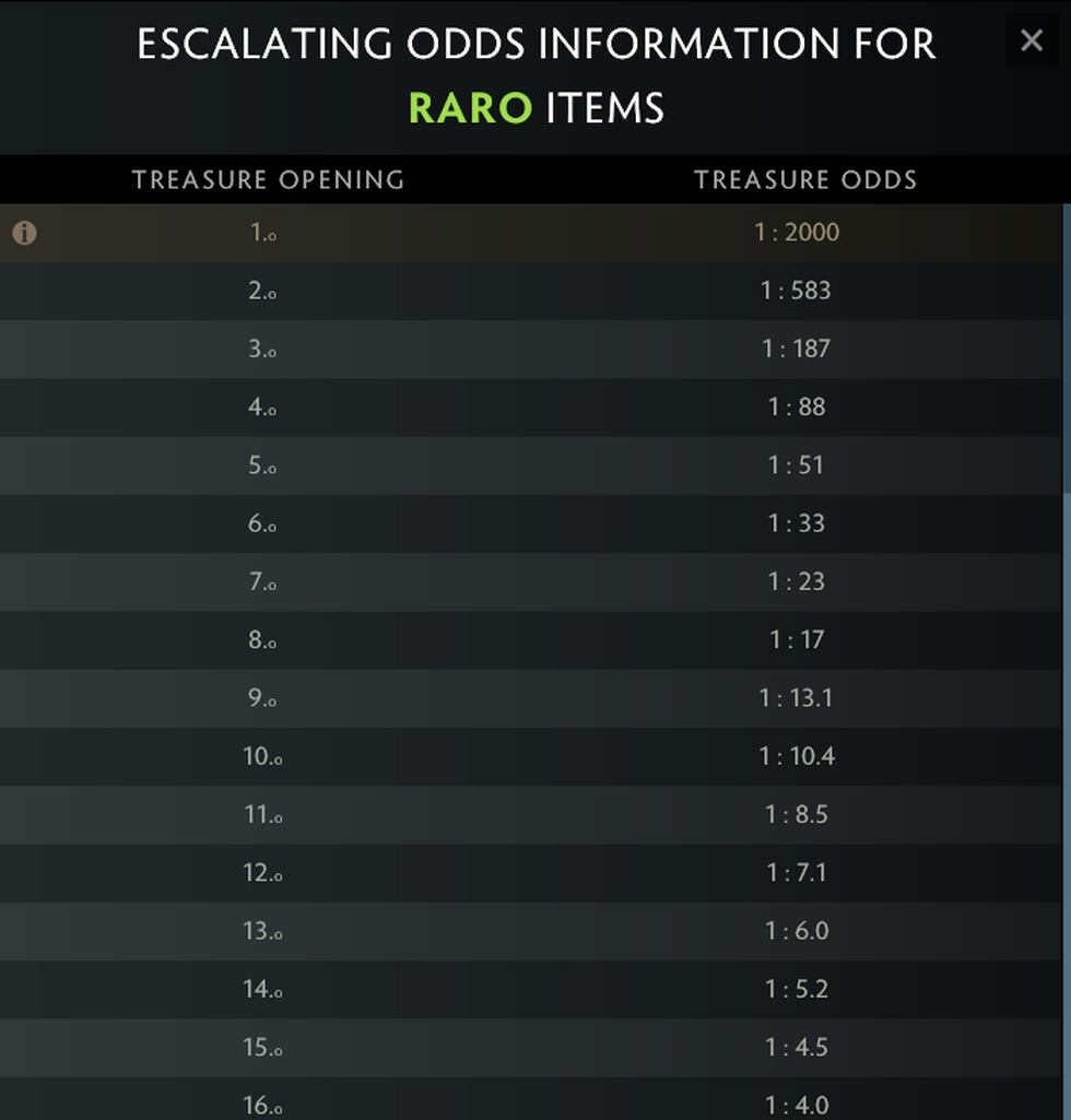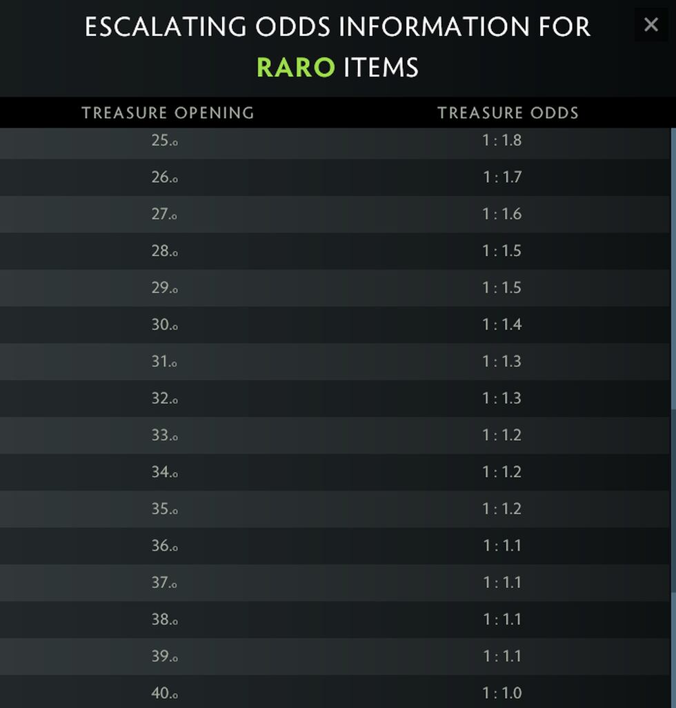 Es importante recordar que ahora podemos ver el porcentaje de probabilidad de que nos toquen los cofres raros con cada apertura de un tesoro. Si abrimos uno hay posibilidad entre dos mil (un 0,0005%) de que nos toque una recompensa extra y así sucesivamente hasta abrir un total de 40 cofres que ya nos tocaría seguro al 100%.