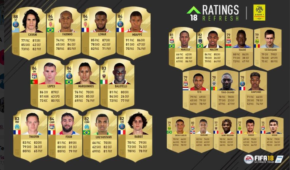EA Sports sigue agregando contenido nuevo a su videojuego bandera FIFA 18, esta vez cambiando los rating de diversos jugadores de la Ligue 1 Conforama, con Edison Cavani a la cabeza mejorando de 87 a 88 en su puntaje general.