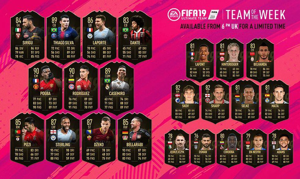 EA Sports presentó a los jugadores de la semana (Team of the Week - TOTW) de FIFA 19. Se trata de la edición 22 de esta selección del videojuego que destaca por contar con figuras interesantes como Paul Pogba, James Rodríguez, Casemiro, entre muchos otros.