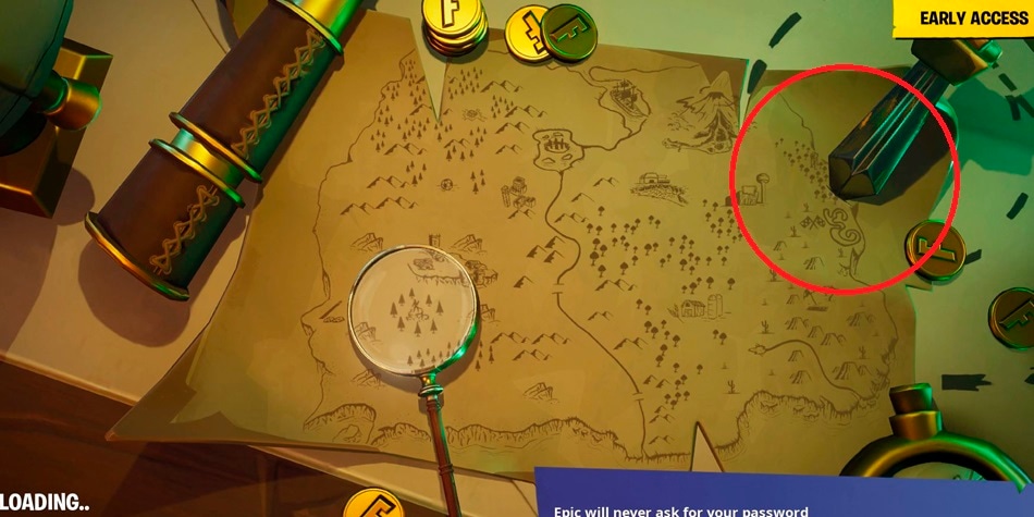 ¡Ya no des más vueltas en el mapa! Aquí te contamos todos los detalles de este nuevo desafío. Epic Games ha cambiado la pantalla de carga de las partidas con un tema de los piratas. Se trata de un mapa del tesoro que tiene varios elementos por encima.