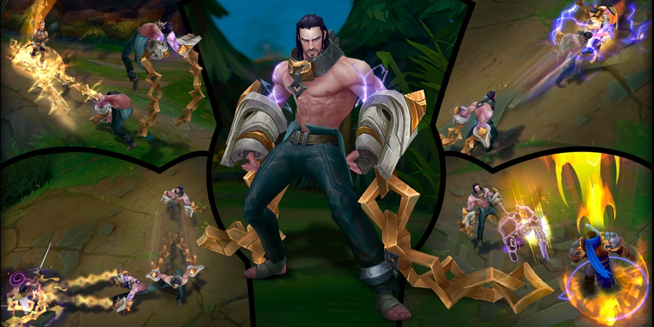 Ahora se conoce que este prisionero de Demacia se ha liberado y se unirá a la 'Liga de las leyendas'. Entre sus habilidades, este es capaz de lanzar sus cadenas para infligir daño en área; también atar a un campeón enemigo con sus armas y saltar a su posición.