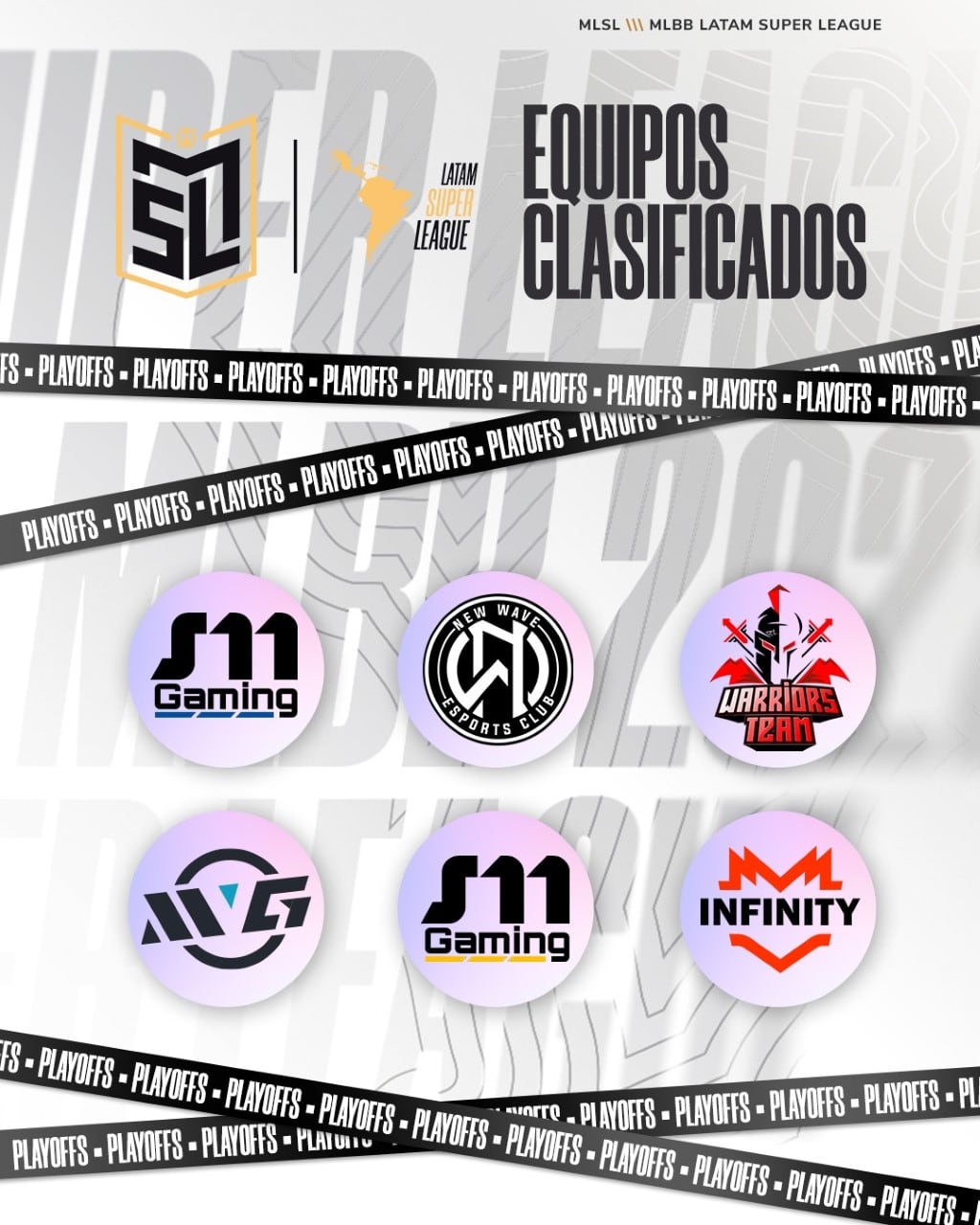 Mobile Legends Super League tendrá por delante la etapa de Playoffs desde el próximo 27 al 30 de octubre, de forma presencial en el Circuit Media Group, (Av Del Pinar 110, 1305, Surco, Lima, Perú). S11 Gaming Argentina, New Wave México, Warriors Team, Malvinas Gaming, S11 Gaming Bolivia e INFINITY son los seis mejores equipos de la etapa regular y competirán entre sí por los dos cupos al M4 World Championship y un prize pool de 25.000 dólares.