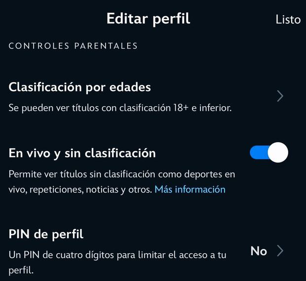 - Busca en Controles parentales, la opción “En vivo y sin clasificación”, el cual está desactivado. Desliza para activarlo.