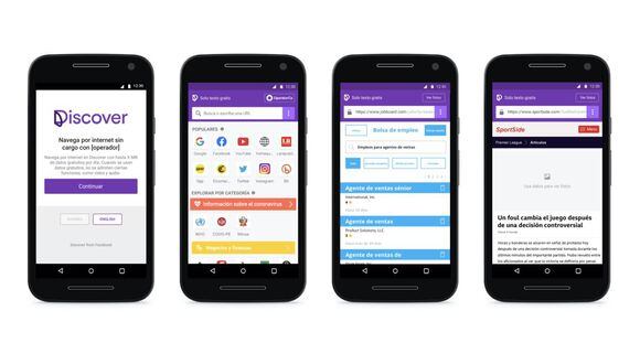 Discover es una app para Android y web móvil que ofrece la navegación por cualquier página en Internet con un saldo diario de datos gratuitos de los operadores de telefonía celular participantes.
