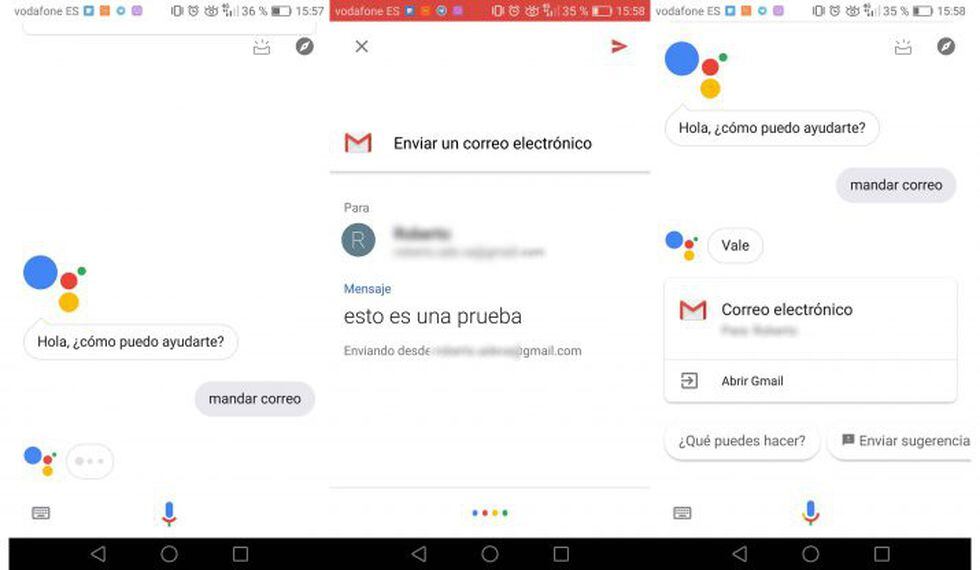 2. Presiona el botón con forma de micrófono y cuando salgan las cuatro barras de colores el móvil estará escuchando. Bastará que digas 'enviar correo' para activar esta función de Gmail.