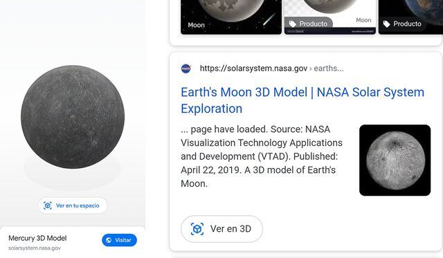 Para poder activar los planetas en 3D primero deberás ingresar el nombre de cada no de ellos, luego desplazarte hacia abajo en la ventana del buscador y observarás la pestaña para verlos en realidad aumentada. Esta herramienta ha sido desarrollada en conjunto con la NASA.
