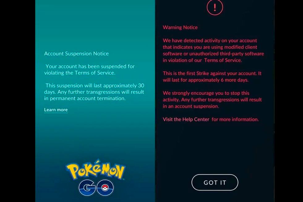 Aunque el mensaje de bloqueo no es permanente, sino que solo dura alrededor de 2 días, menciona que se ha incumplido con las normas establecidas en Pokémon GO y que aplicaciones terceras han perjudicado tu juego.