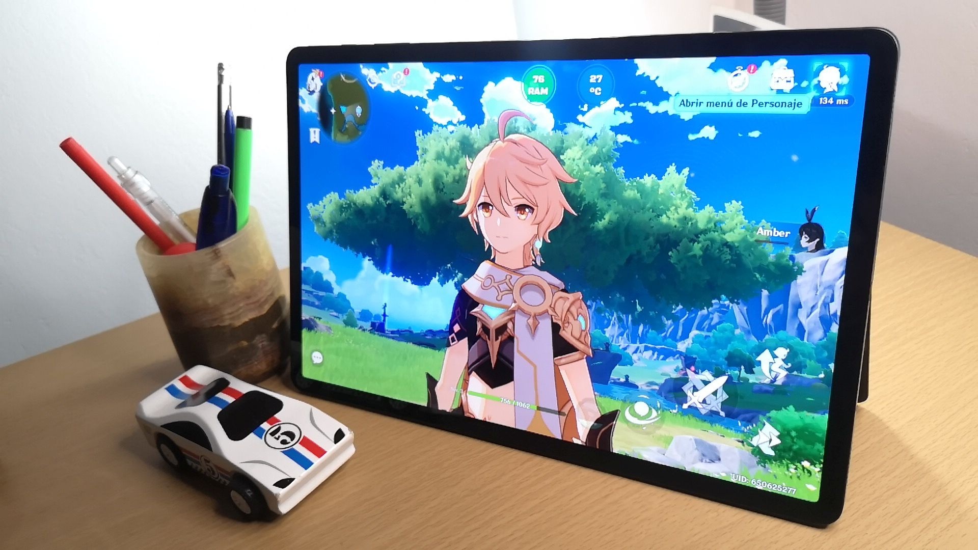 Ya para cuestiones gamer, la tablet viene con cuatro altavoces estéreo AKG, tecnología Dolby Atmos y tres micrófonos. No hay que olvidar que viene incluido el Game Launcher para gestionar las aplicaciones de videojuegos y el Game Booster para calibrar el rendimiento del sistema. En cuestiones de ergonomía, el dispositivo se siente cómodo, sólido por el marco de aluminio y viene con esta carcasa imantada. Su acabado aparenta ser de cuero, no me convence del todo porque se siente plástico al tacto, pero hace su trabajo. Además, la conexión del teclado y el panel es el adecuado y no se sale cuando doblas la tablet, y la distribución de las teclas y el tamaño del mousepad sí me convencen.