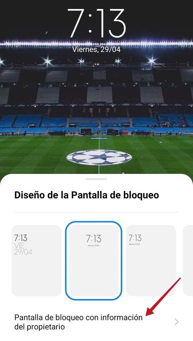 - Si te fijas en la parte baja de la pantalla verás la opción Pantalla de bloqueo con información del propietario, pulsa sobre ella