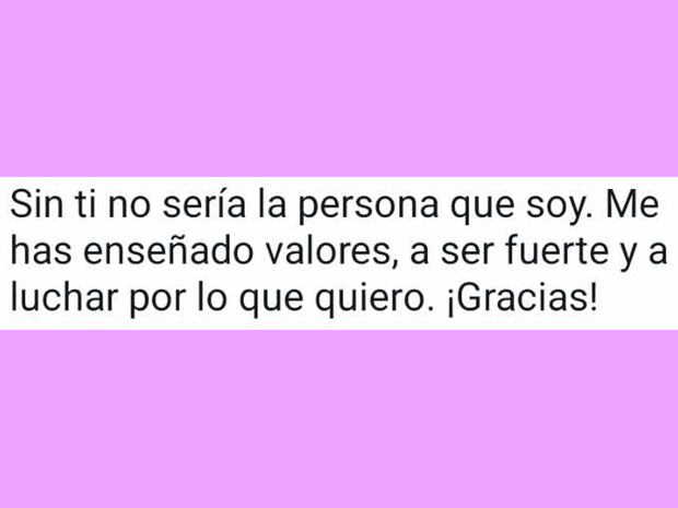 - Sin ti no sería la persona que soy. Me has enseñado valores, a ser fuerte y a luchar por lo que quiero. ¡Gracias!