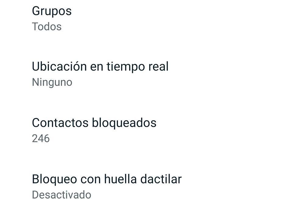 Una vez dentro, pulsa sobre Privacidad, desplázate hacia abajo y encontrarás la opción de Grupos. Por el momento solo podrás elegir si solo te añaden a un grupos Todos, tus amigos, o tus amigos excepto. No existe la posibilidad de decir que nadie te añada a un chat.