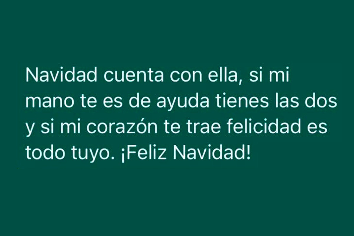 - Si mi sonrisa te sirve de adorno en Navidad cuenta con ella, si mi mano te es de ayuda tienes las dos y si mi corazón te trae felicidad es todo tuyo. ¡Feliz Navidad!