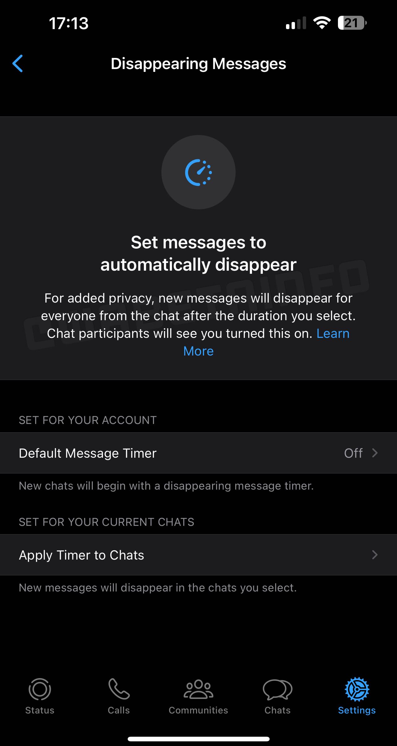 “Como puede ver en esta captura de pantalla, finalmente está disponible una nueva interfaz para la sección de mensajes que desaparecen. Para descubrir si la nueva interfaz ya está habilitada en su cuenta, simplemente abra Configuración de WhatsApp> Privacidad> Mensajes que desaparecen. En esta sección, también puede configurar el temporizador de mensajes predeterminado que configurará automáticamente sus nuevos chats para que desaparezcan los hilos. Además, puede convertir fácilmente varias conversaciones en chats que desaparecen”, detalla el medio mencionado.