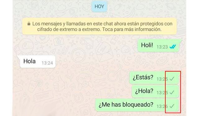 Finalmente, y la prueba más rápida, es enviándole un mensaje. Si este no registra el doble check plomo, preocúpate.