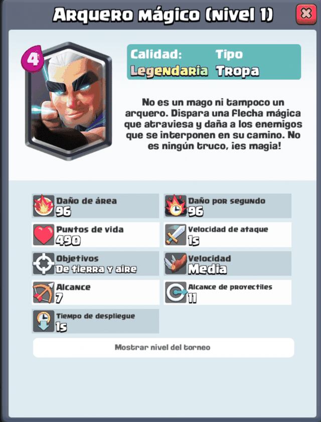 Si te toca en tu set de cartas, te recomendamos que no vaya al frente del combate. Usa al Arquero mágico para eliminar a las unidades traseras mientras que tus arientes rompen las filas enemigas. Deberás ganar 12 partidas y perder menos de tres veces para obtener al Arquero mágico. Todavía se podrá conseguir la nueva carta de Clash Royale dentro de 14 días dentro de los cofres.