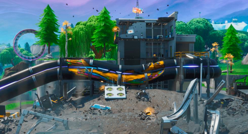En estas imágenes publicadas por la cuenta @FortniteBR se puede ver a la perfección que la casa y el enorme cable que llevaba en la localización desde el inicio de la temporada nueve han sufrido graves daños. Su gran huella está ahora marcada en el suelo al igual que en las inmediaciones del lago helado del bioma nevado.