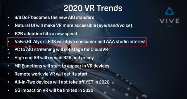 Durante esta semana, mucho se especulo acerca del desarrollo de Left 4 Dead 3. Alvin Wang Graylin, presidente de HTC en China, compartió por Twitter unas diapositivas en donde se aseguraba que estas serían las tendencias de realidad virtual para el 2020.
