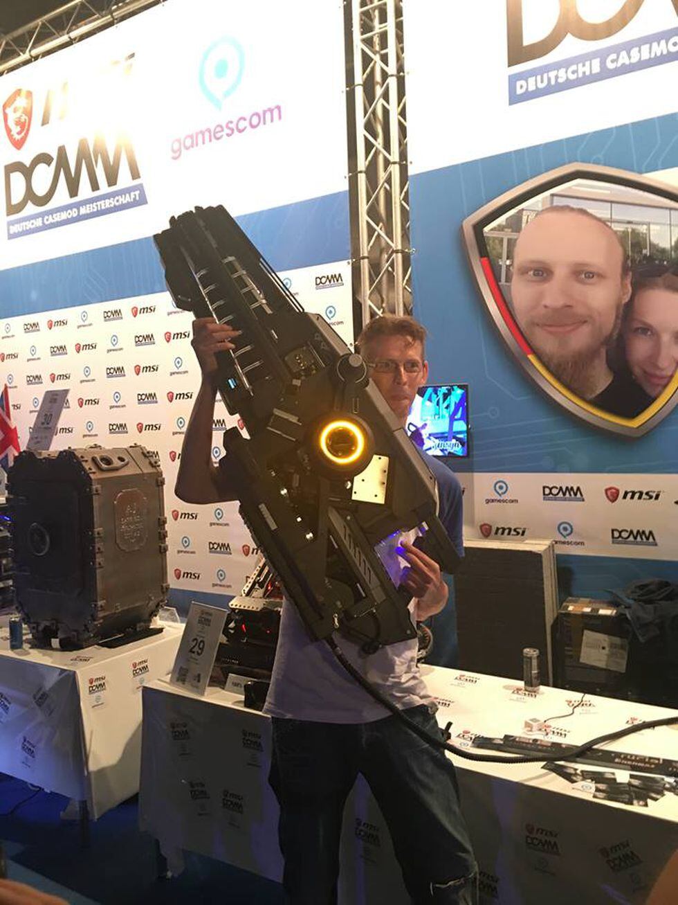 Este ordenador había sido creado para parecer un arma futurista gigantesca. Cada uno de los componentes estaba perfectamente integrado al diseño exterior. De esta manera, junto a Asus, Captens Dream, el responsable de esta "arma", creó una Gamer que bien podría ser un rifle salido de Halo o Destiny 2.