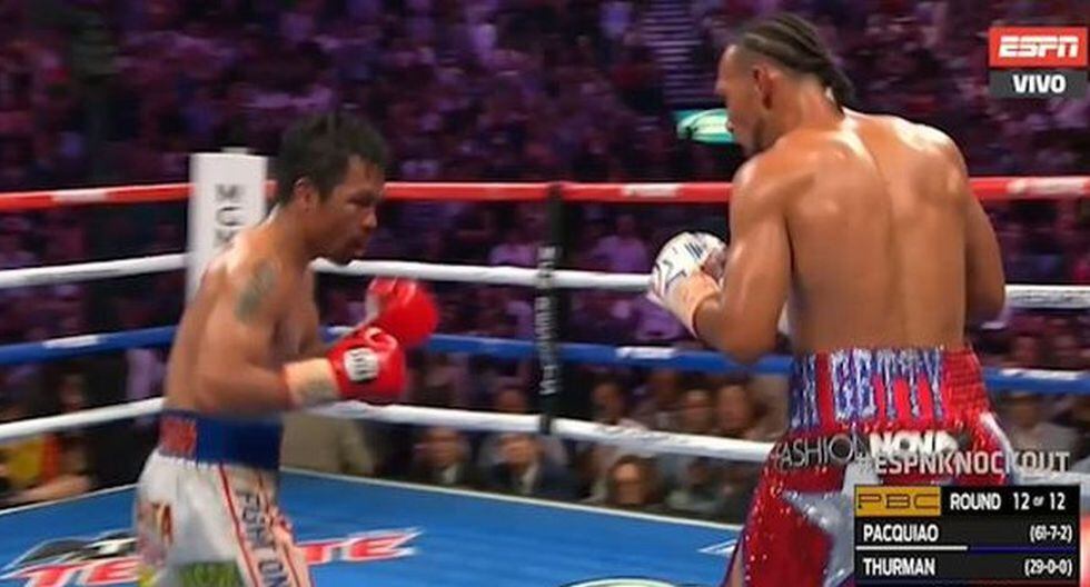 Thruman (29-1) mostró una llamativa tenacidad para buscar la remontada en los asaltos centrales, poniendo a prueba varias veces el mentón de Pacquiao con duros golpes.