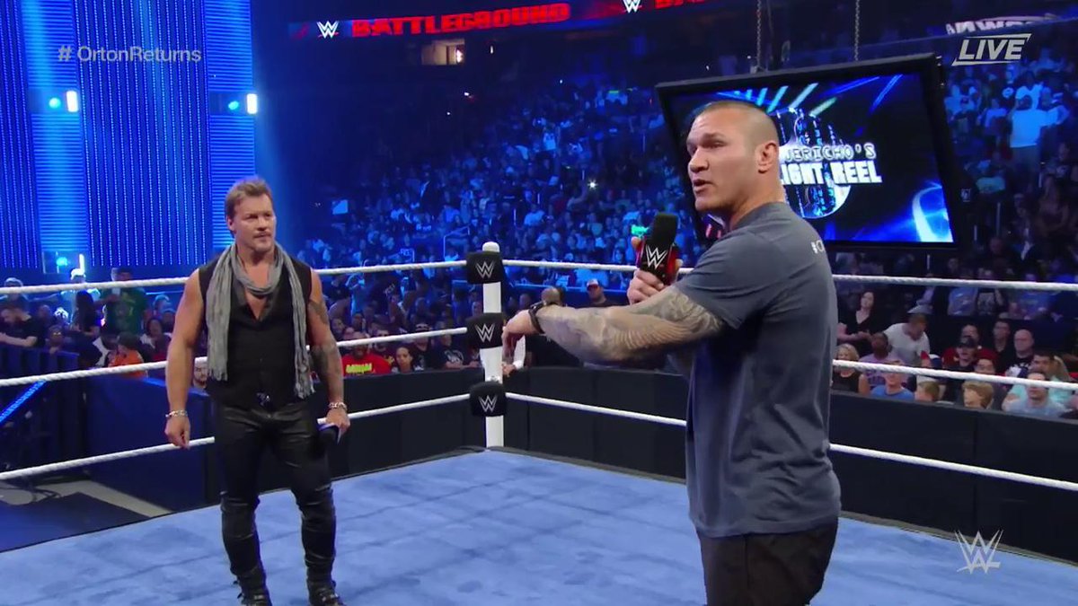 Justo antes de que Dean Ambrose se enfrentara a sus excompañeros de The Shield, la música de Randy Orton retumbó. Chris Jericho le dio la bienvenida al ring y no dudó en preguntarle sobre su próximo enfrentamiento en SummerSlam.