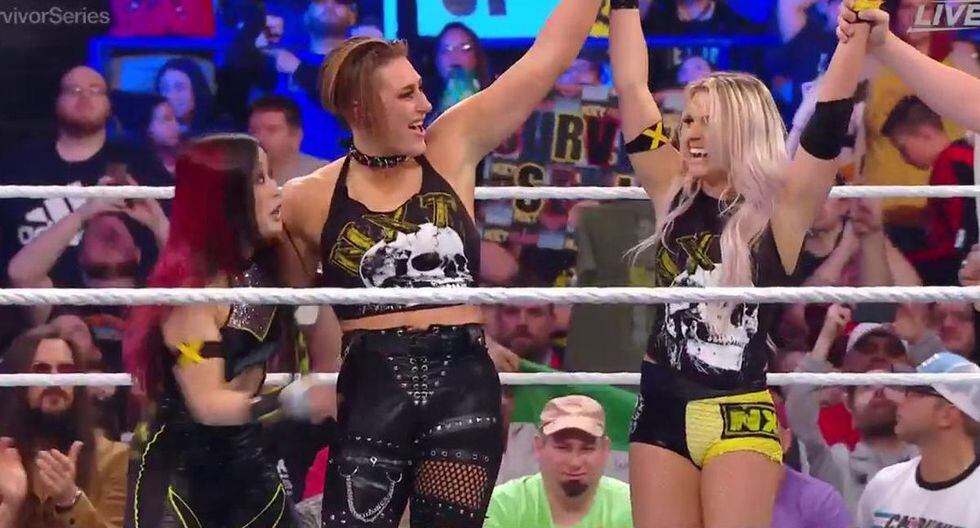 La cartelera principal de Survivor Series abrió con la lucha tradicional de eliminación femenina (5 mujeres por marca). Y las ganadoras de este combate fueron las superestrellas de NXT, dirigidas por Rhea Ripley. En los minutos finales, solo quedaron las capitanas de NXT y de SmackDown. De las dos, Sasha Banks estaba ganado, pero Candice LeRae e Io Shirai volvieron para ayudar a su líder. La ‘Jefa’, estando en desventaja, no pudo hacer mucho y perdió por cuenta de tres ante Ripley.