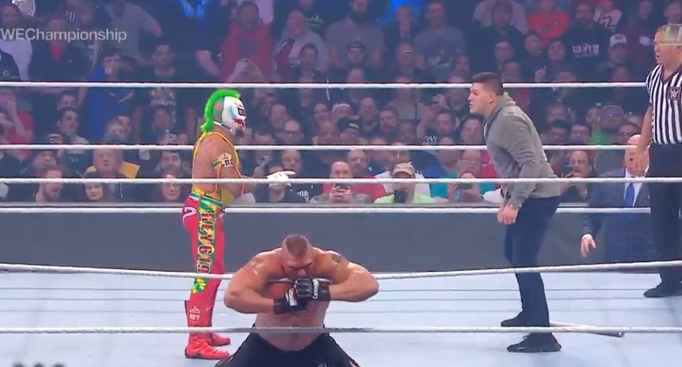 Rey Mysterio, llegó al cuadrilátero de Survivor Series vestido como el ‘Joker’ y así se enfrentó al campeón Brock Lesnar por el título de la WWE, en un combate sin descalificación. Como era de esperarse, la ‘Bestia Encarnada’ le estaba dando una paliza al enmascarado. Iba a seguir haciéndolo hasta que Dominik, el hijo de Mysterio, llegó con una bandera blanca.