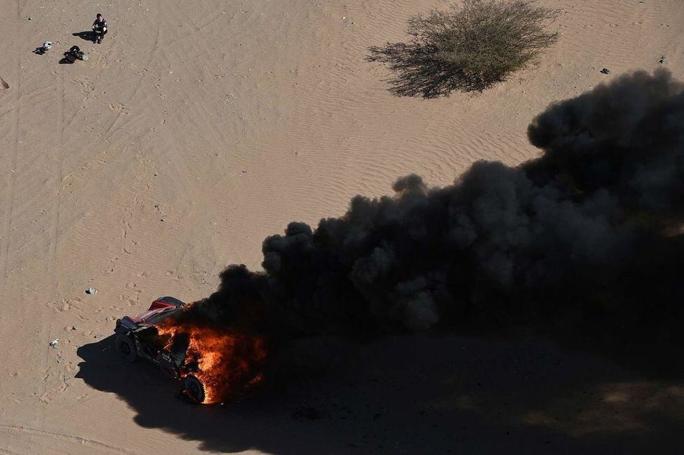 La etapa inaugural del Rally Dakar 2020, que se celebra en Arabia Saudita, dejó un momento impactante. Y es que el coche del piloto Romain Dumas comenzó a quemarse sin previo aviso. Felizmente no hubo ningún herido.