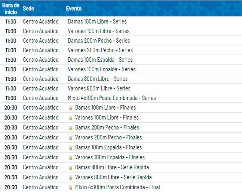 Es importante mencionar que la Para natación se disputará del 25 al 31 de agosto en el mismo Centro Acuático, en 13 categorías y dará cupos para los Juegos Paralímpicos Tokio 2020.