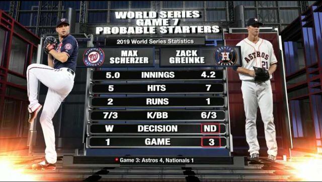 Y este séptimo partido tendrá el duelo en el montículo entre Max Scherzer y Zack Greinke, jugadores que buscan ser decisivos determinantes para darle un título tan ansiado para cada uno de los cuadros.
