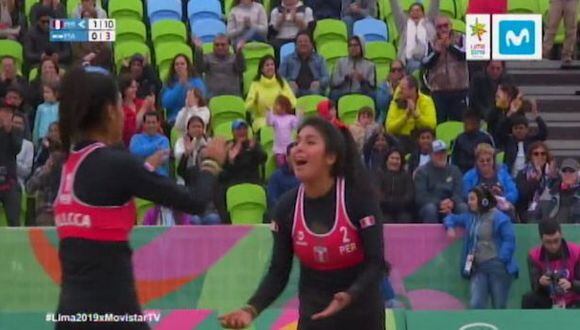 La dupla peruana de vóley playa tuvo un gran partido ante El Salvador en el debut de vóley playa femenino. Alexandra Mendoza realizó un gran punto, tras una buena salvada previa.