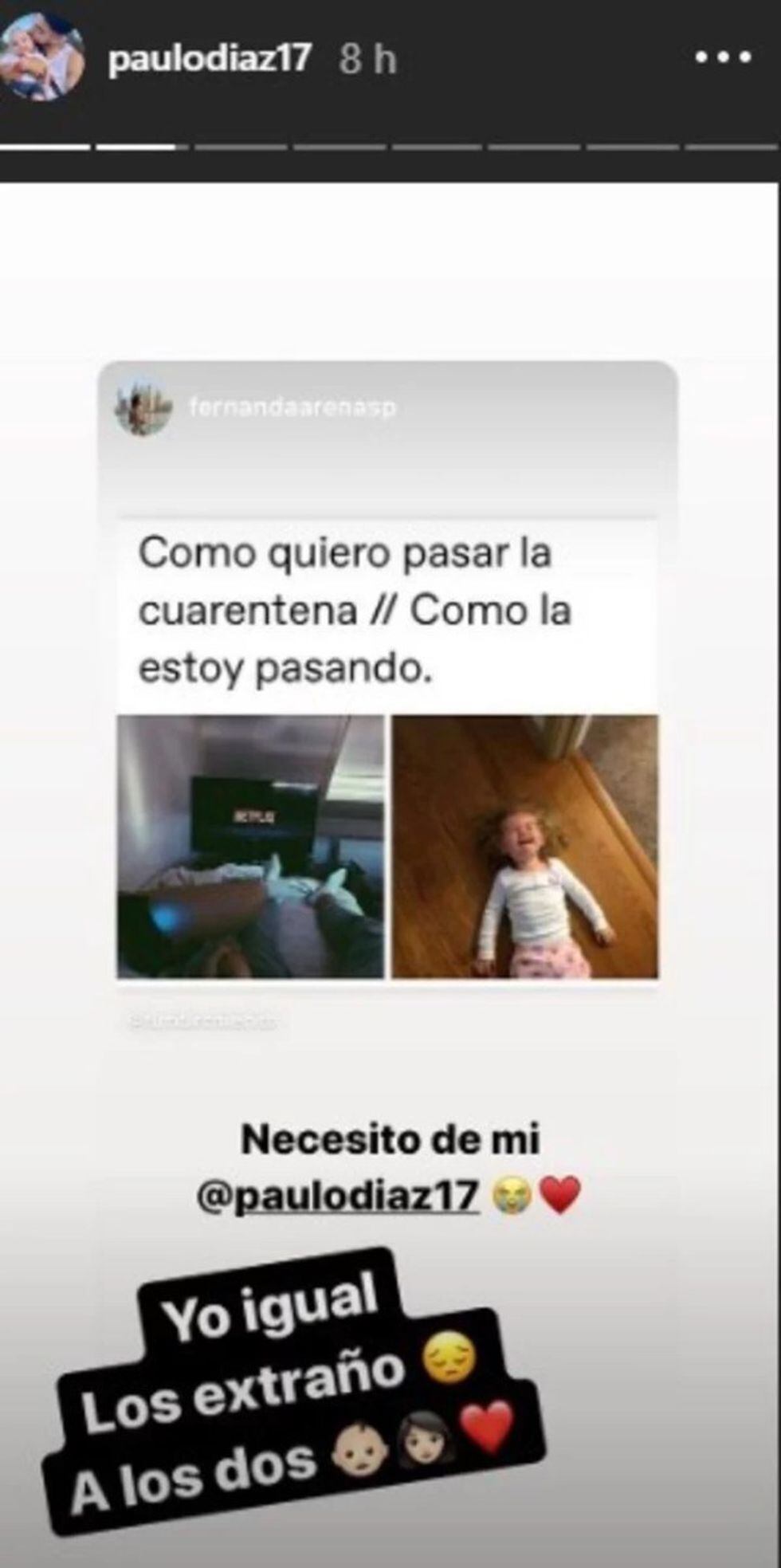 Por esta disposición, Paulo Díaz no puede movilizarse y tampoco puede viajar a la capital chilena por el cierre de las fronteras. Entonces, el hombre de River Plate debe conformarse con el uso de las videollamadas para comunicarse con Fernanda Arenas y el pequeño Agustín.
