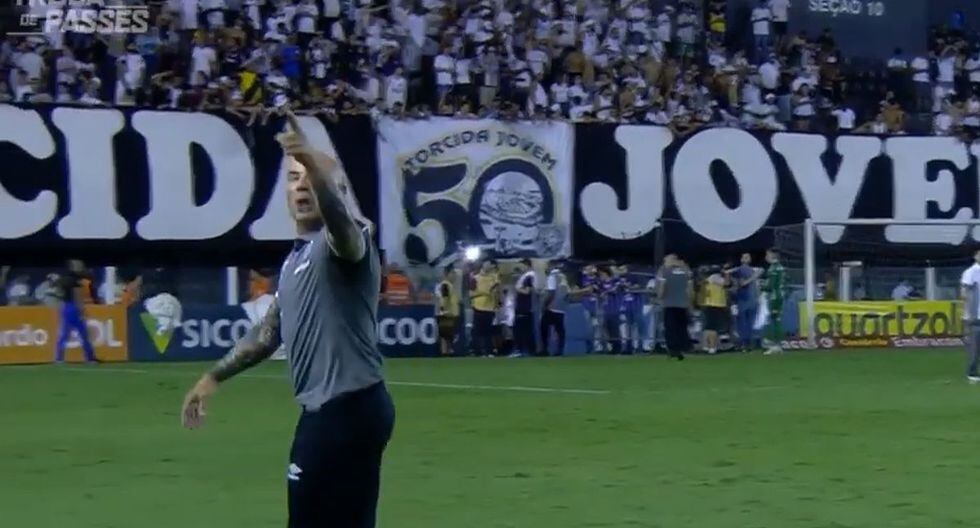 "A vos te voy a ir a buscar", gritaba Sampaoli a la tribuna ante la sorpresa de sus jugadores. Fue precisamente uno de ellos que tuvo que pedir calma al hincha que desde la tribuna le reclamaba al argentino por estar tan lejos del líder Flamengo.