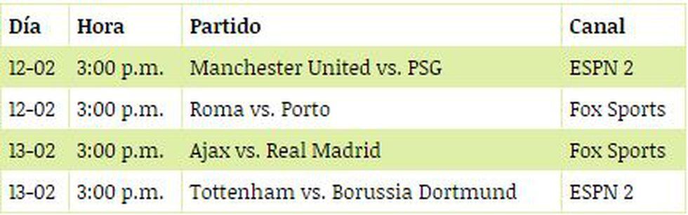 Volvió la actividad la Liga de Campeones luego de cerca de dos meses de para, el torneo de clubes más importante de Europa con la presencia de Real Madrid, Barcelona, Juventus, Manchester United y PSG, entre otros clubes. Entre miércoles se jugaron otros dos partidos de ida de octavos de final. El vigente campeón, Real Madrid, visitó a Ajax de Holanda, mientras que el Borussia Dortmund lo hizo ante el Tottenham de Pochettino.