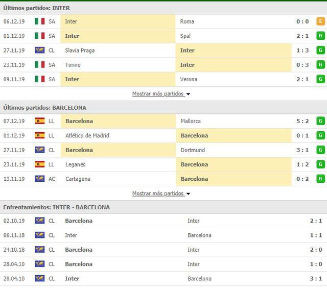 Si para el Barcelona es un partido sin trascendencia, el Inter de Milán se juega la vida y se encomendará al momento dulce del argentino Lautaro Martínez y del belga Romelu Lukaku y a un estadio repleto con más de 70 mil espectadores para sellar su billete para los octavos de final en el grupo de la muerte de esta edición.