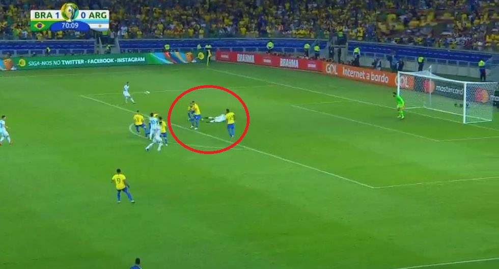 En dicho plano, el equipo de Asistencia Virtual por Video, liderado por el uruguayo Leodán González, habría visto que Agüero pisó a Dani Alves en primera instancia, antes que el lateral contacte con el atacante.