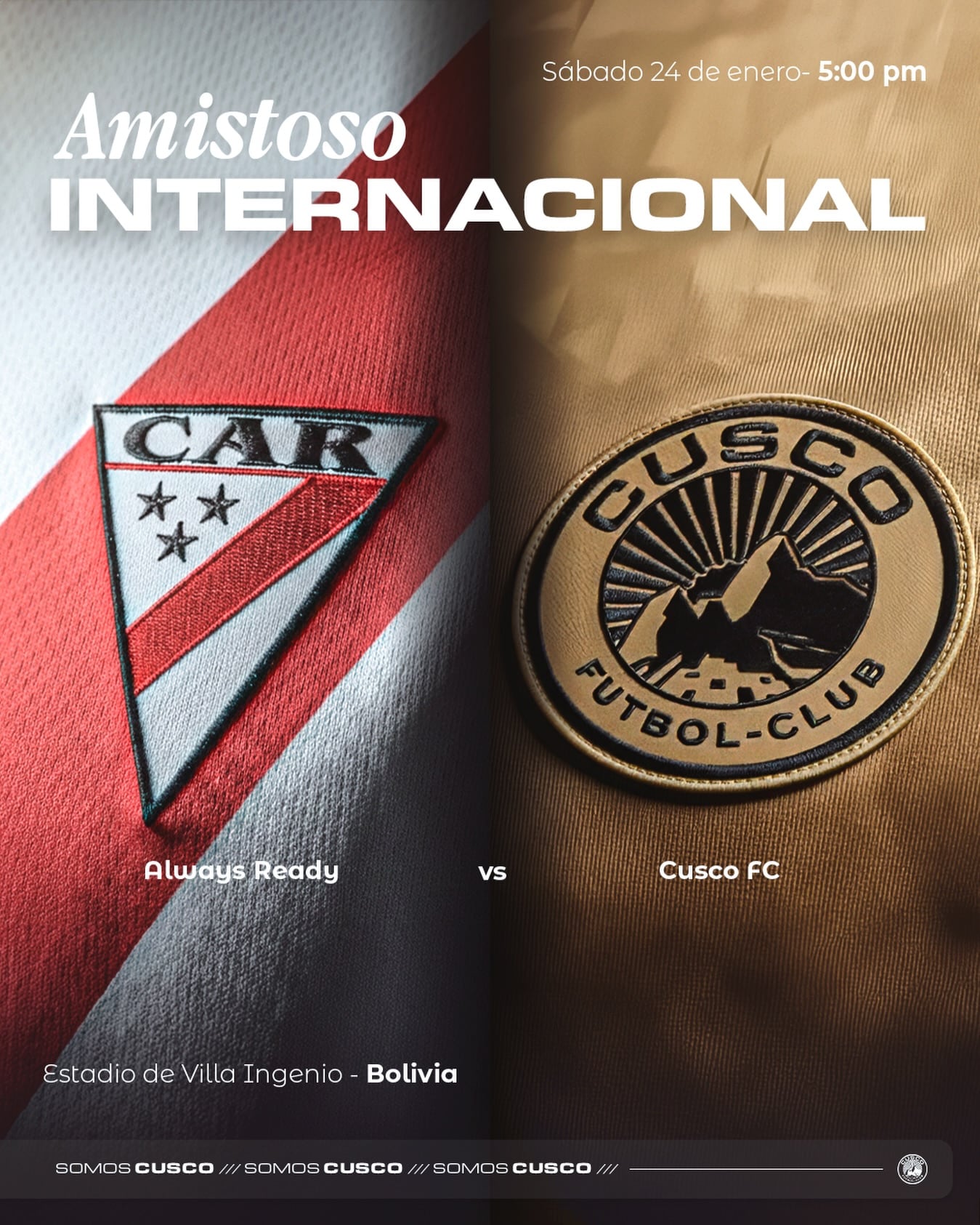 “Este 24 de enero, nos enfrentamos al Campeón Boliviano, en una tarde muy especial. Un partido que nos permite competir, sumar experiencia y seguir consolidando nuestro juego”, indicó el club cusqueño en sus cuentas oficiales.