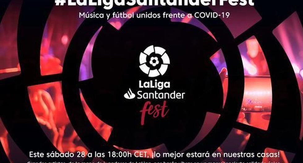 #LaLigaSantanderFest, hashtag con el que se ha hecho viral en Twitter, se llevará a cabo este sábado 28 de marzo a partir de las 6:00 p.m. hora española (12:00 p.m. en todo el territorio peruano) y será transmitido por las señales de Movistar LaLiga y LaLiga Sports TV. Reunirá a más de 20 artistas de primer nivel, al igual que futbolistas y personalidades de LaLiga, todo para batallar ante el coronavirus.