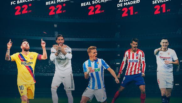 No hay tensión sólo en la cima de la tabla de LaLiga Santander. Los 13 primeros equipos de la clasificación están separados por sólo cinco puntos. Desde el Barcelona en el primer puesto con 22 puntos hasta el Valencia en el 13º lugar con 17 puntos, cada equipo está separado por un par de victorias después de lo que ha sido un comienzo fascinante de la temporada 2019/20.