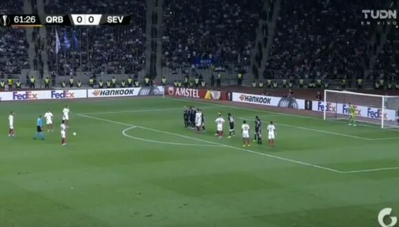 El ex técnico del Real Madrid lo alineó como titular contra el Qarabag y comenzó a hacer su historia en Andalucía con un golazo de tiro libre a los 62 minutos de juego. El atacante abrió la cuenta para el Sevilla y posteriormente lo hicieron Munir y Óliver Torres para terminar el encuentro entre ambos equipos con un 3-0 a favor del equipo local.