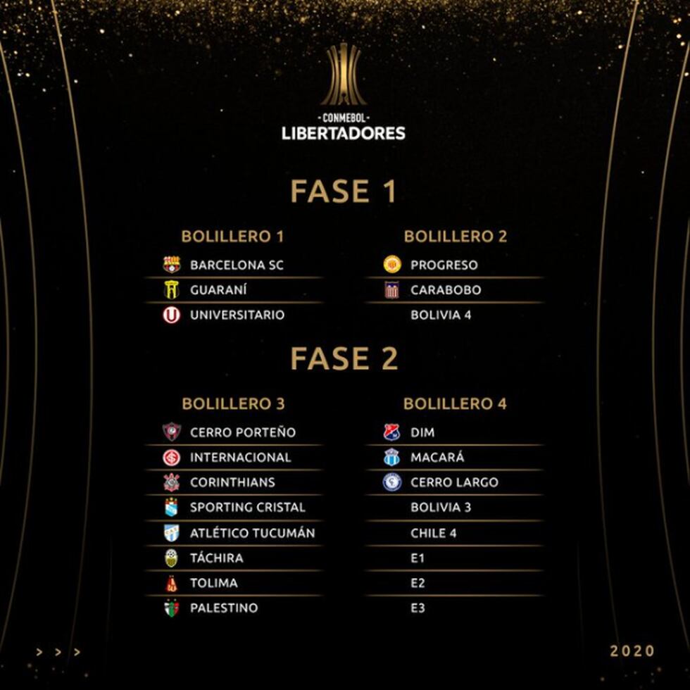 Bombo 3: los próximos siete equipos ubicados en el ranking Conmebol (LDU, América de Cali, Athletico Paranaense, Junior, Alianza Lima, Caracas, Delfín y Tigre.).