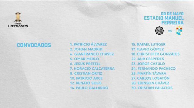 Sporting Cristal, último en la tabla con cuatro puntos, necesitan un triunfo ante Olimpia de por lo menos cinco goles de diferencia y confiar en que Godoy Cruz y Universidad de Concepción empaten su partido para avanzar de ronda.